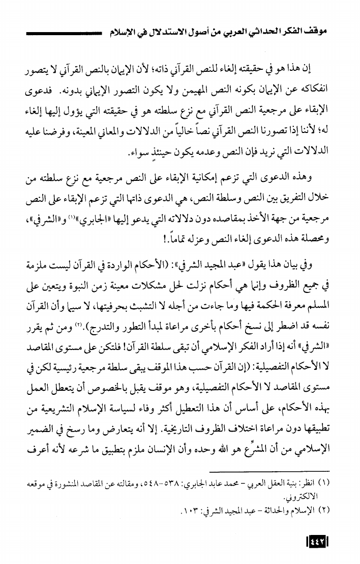 موقف الفكر الحداثي العربي من أصول الإستدلال في الإسلام دراسة تحليلية نقدية