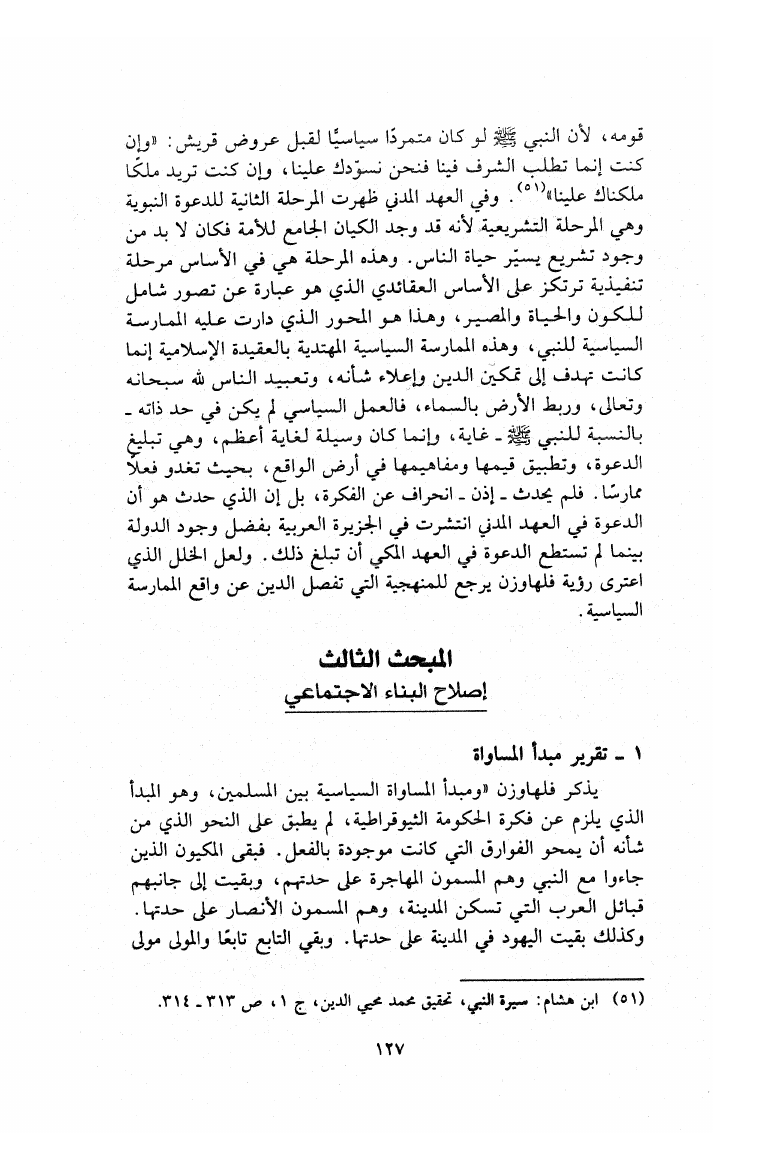 نام کتاب : الاستشراق في السيرة النبوية دراسة تاريخية لآراء (وات-بروكلمان-فلهاوزن) مقارنة بالرؤية الإسلامية نویسنده : عبد الله محمد الأمين النعيمي جلد : 1 صفحه : 127