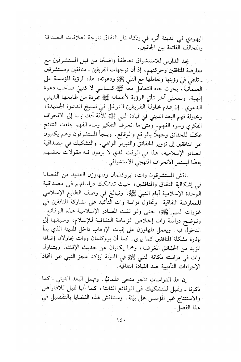 نام کتاب : الاستشراق في السيرة النبوية دراسة تاريخية لآراء (وات-بروكلمان-فلهاوزن) مقارنة بالرؤية الإسلامية نویسنده : عبد الله محمد الأمين النعيمي جلد : 1 صفحه : 140
