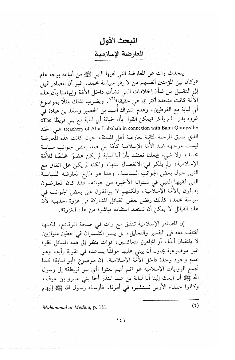 نام کتاب : الاستشراق في السيرة النبوية دراسة تاريخية لآراء (وات-بروكلمان-فلهاوزن) مقارنة بالرؤية الإسلامية نویسنده : عبد الله محمد الأمين النعيمي جلد : 1 صفحه : 141