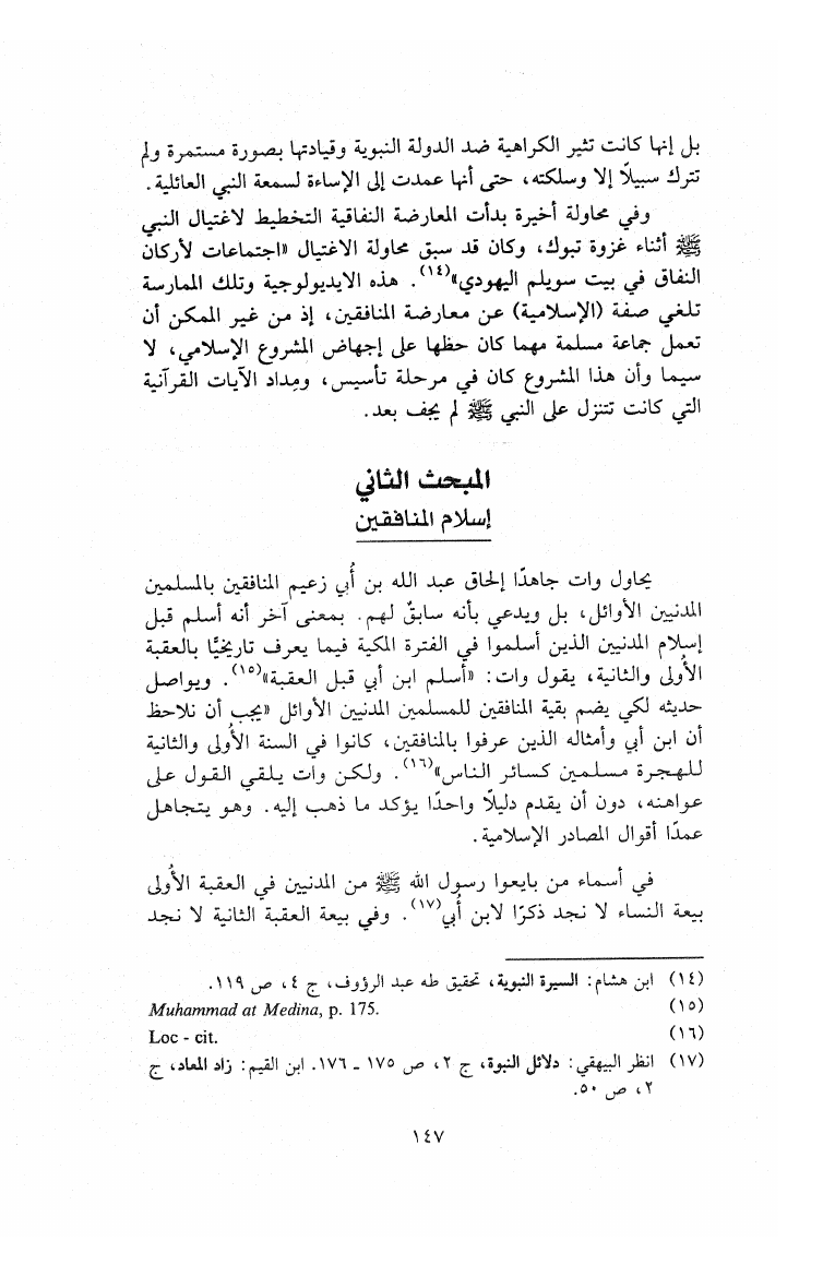 نام کتاب : الاستشراق في السيرة النبوية دراسة تاريخية لآراء (وات-بروكلمان-فلهاوزن) مقارنة بالرؤية الإسلامية نویسنده : عبد الله محمد الأمين النعيمي جلد : 1 صفحه : 147