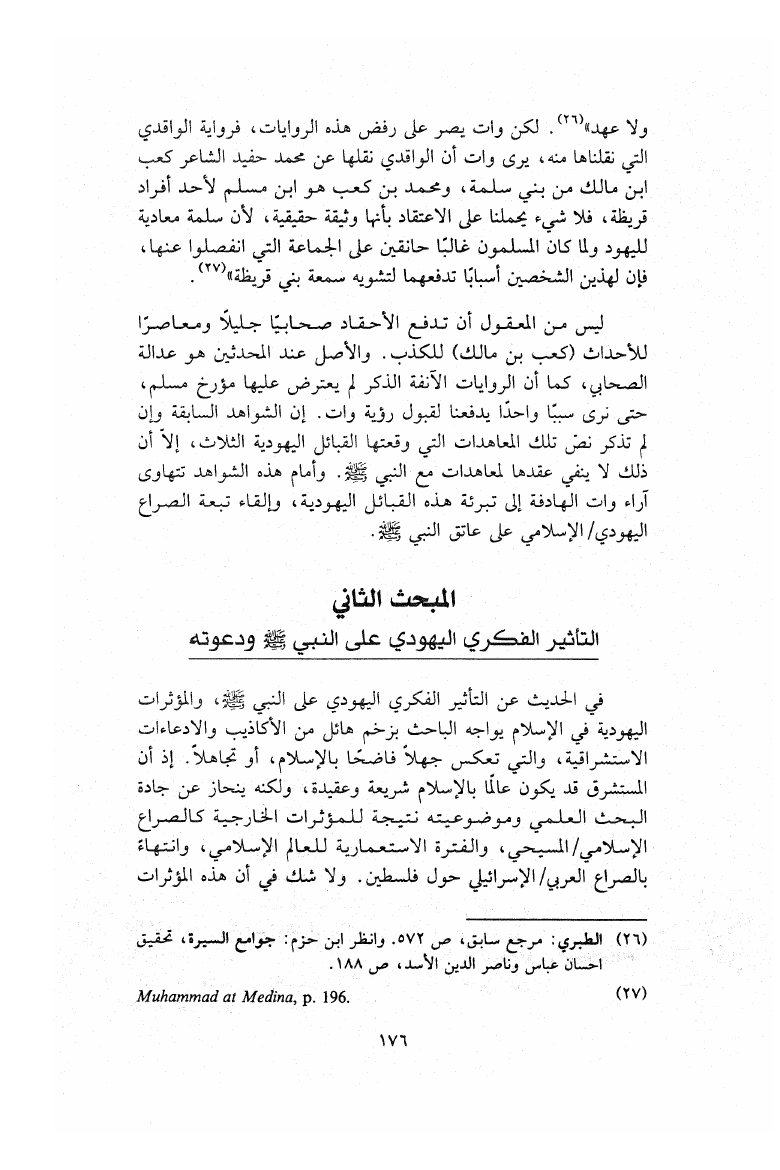 نام کتاب : الاستشراق في السيرة النبوية دراسة تاريخية لآراء (وات-بروكلمان-فلهاوزن) مقارنة بالرؤية الإسلامية نویسنده : عبد الله محمد الأمين النعيمي جلد : 1 صفحه : 176