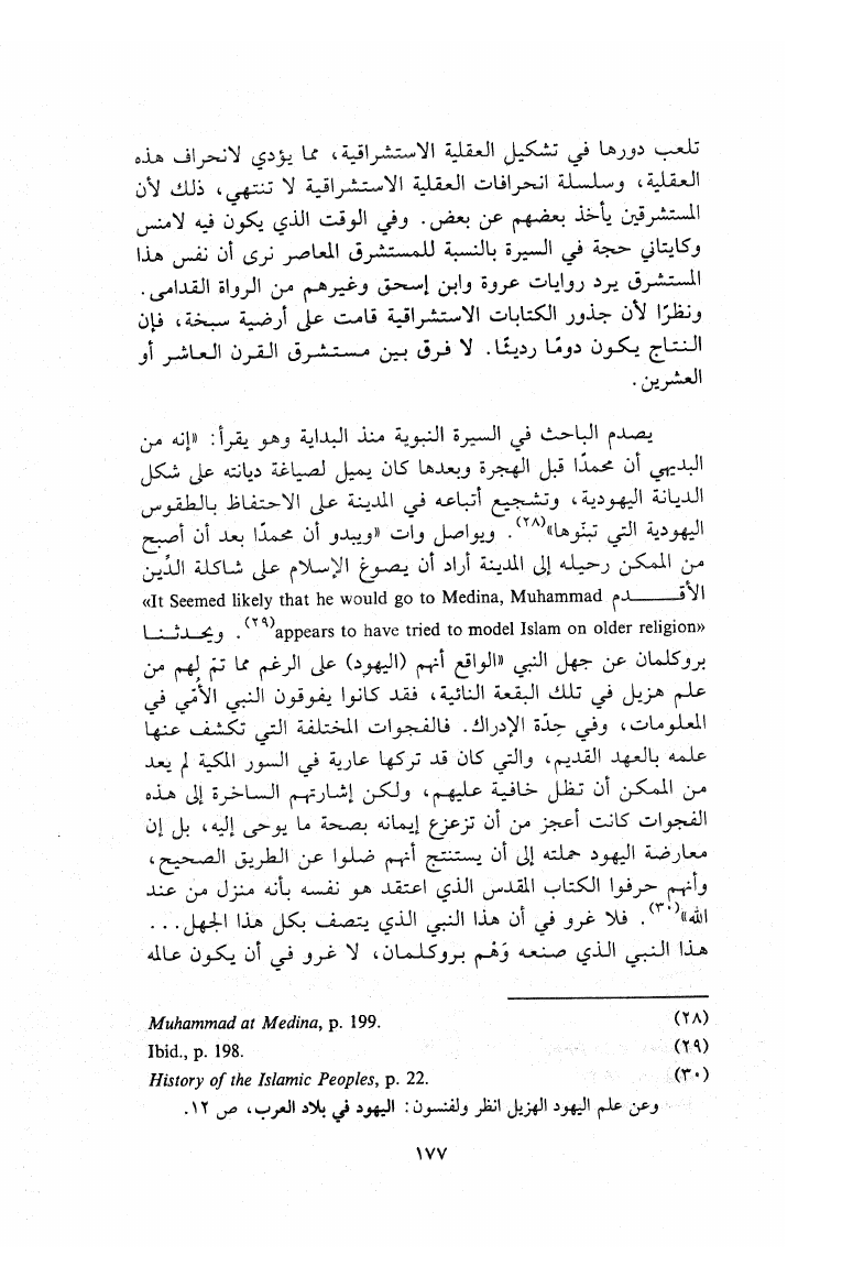 نام کتاب : الاستشراق في السيرة النبوية دراسة تاريخية لآراء (وات-بروكلمان-فلهاوزن) مقارنة بالرؤية الإسلامية نویسنده : عبد الله محمد الأمين النعيمي جلد : 1 صفحه : 177