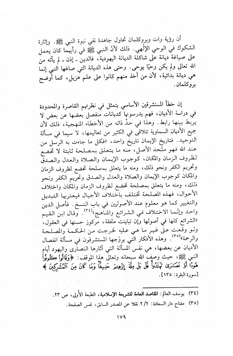 نام کتاب : الاستشراق في السيرة النبوية دراسة تاريخية لآراء (وات-بروكلمان-فلهاوزن) مقارنة بالرؤية الإسلامية نویسنده : عبد الله محمد الأمين النعيمي جلد : 1 صفحه : 179