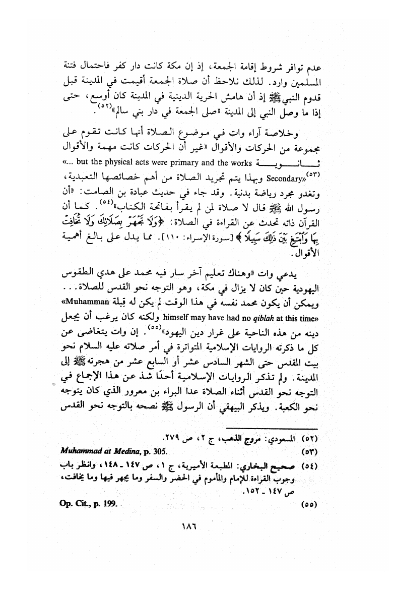 نام کتاب : الاستشراق في السيرة النبوية دراسة تاريخية لآراء (وات-بروكلمان-فلهاوزن) مقارنة بالرؤية الإسلامية نویسنده : عبد الله محمد الأمين النعيمي جلد : 1 صفحه : 186