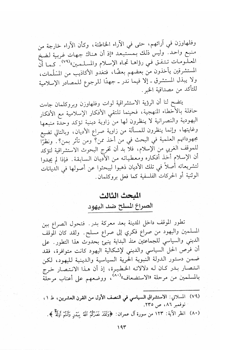 نام کتاب : الاستشراق في السيرة النبوية دراسة تاريخية لآراء (وات-بروكلمان-فلهاوزن) مقارنة بالرؤية الإسلامية نویسنده : عبد الله محمد الأمين النعيمي جلد : 1 صفحه : 193