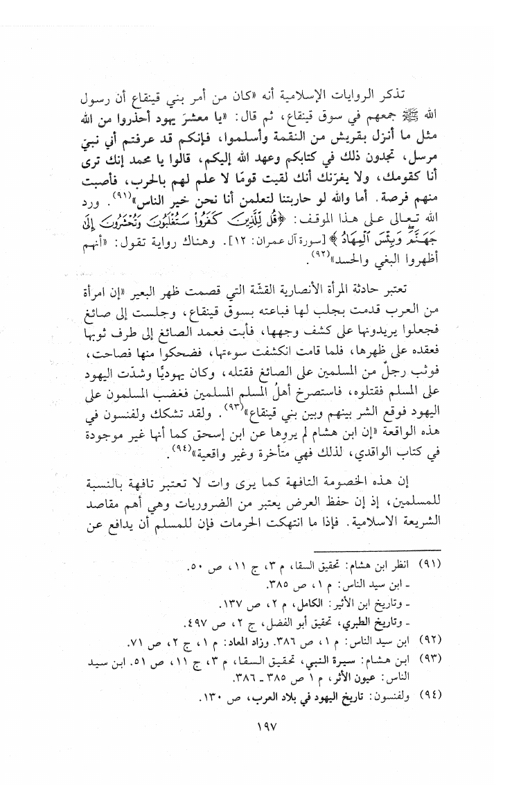 نام کتاب : الاستشراق في السيرة النبوية دراسة تاريخية لآراء (وات-بروكلمان-فلهاوزن) مقارنة بالرؤية الإسلامية نویسنده : عبد الله محمد الأمين النعيمي جلد : 1 صفحه : 197