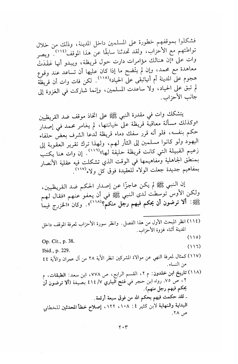 نام کتاب : الاستشراق في السيرة النبوية دراسة تاريخية لآراء (وات-بروكلمان-فلهاوزن) مقارنة بالرؤية الإسلامية نویسنده : عبد الله محمد الأمين النعيمي جلد : 1 صفحه : 203