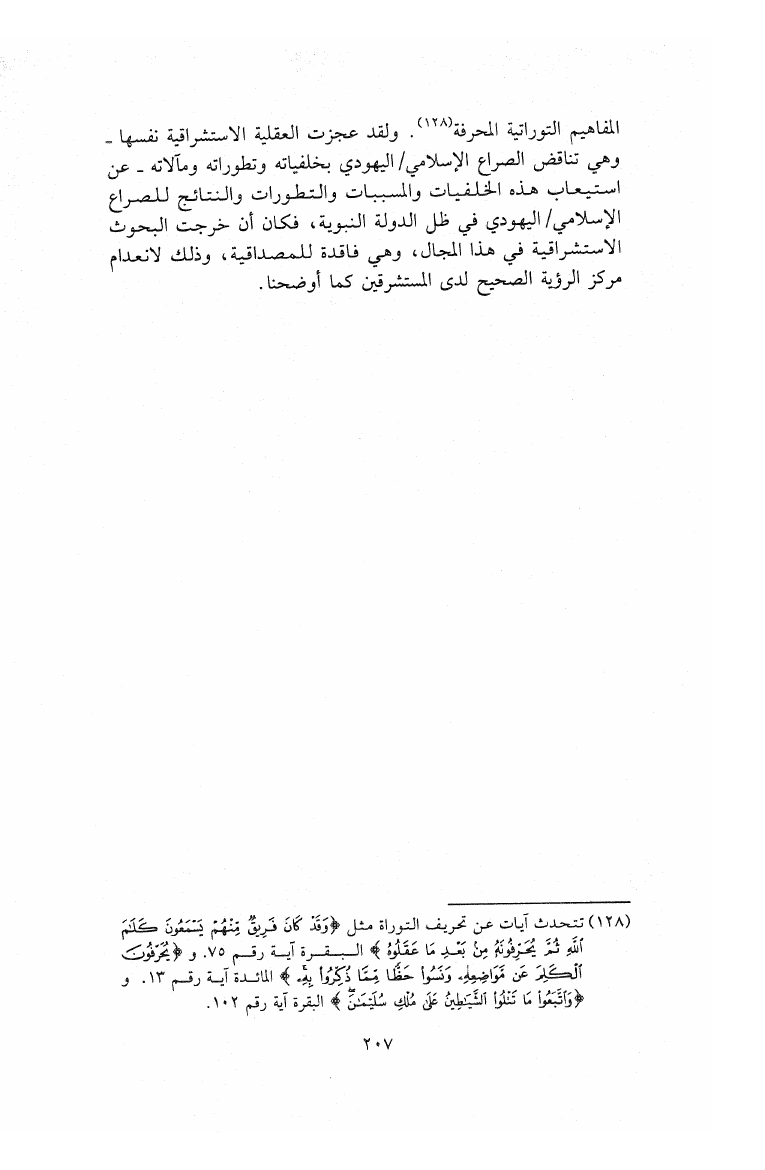 نام کتاب : الاستشراق في السيرة النبوية دراسة تاريخية لآراء (وات-بروكلمان-فلهاوزن) مقارنة بالرؤية الإسلامية نویسنده : عبد الله محمد الأمين النعيمي جلد : 1 صفحه : 207