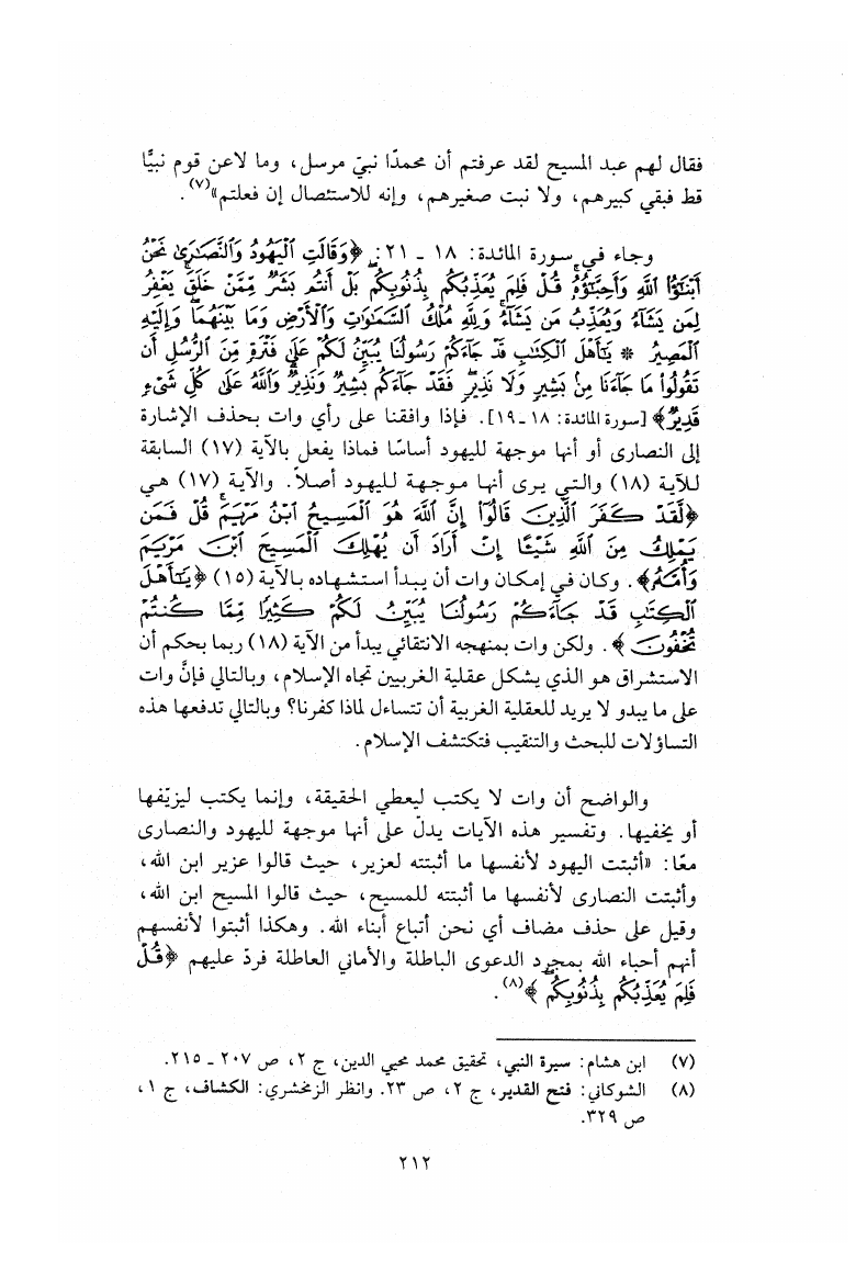 نام کتاب : الاستشراق في السيرة النبوية دراسة تاريخية لآراء (وات-بروكلمان-فلهاوزن) مقارنة بالرؤية الإسلامية نویسنده : عبد الله محمد الأمين النعيمي جلد : 1 صفحه : 212