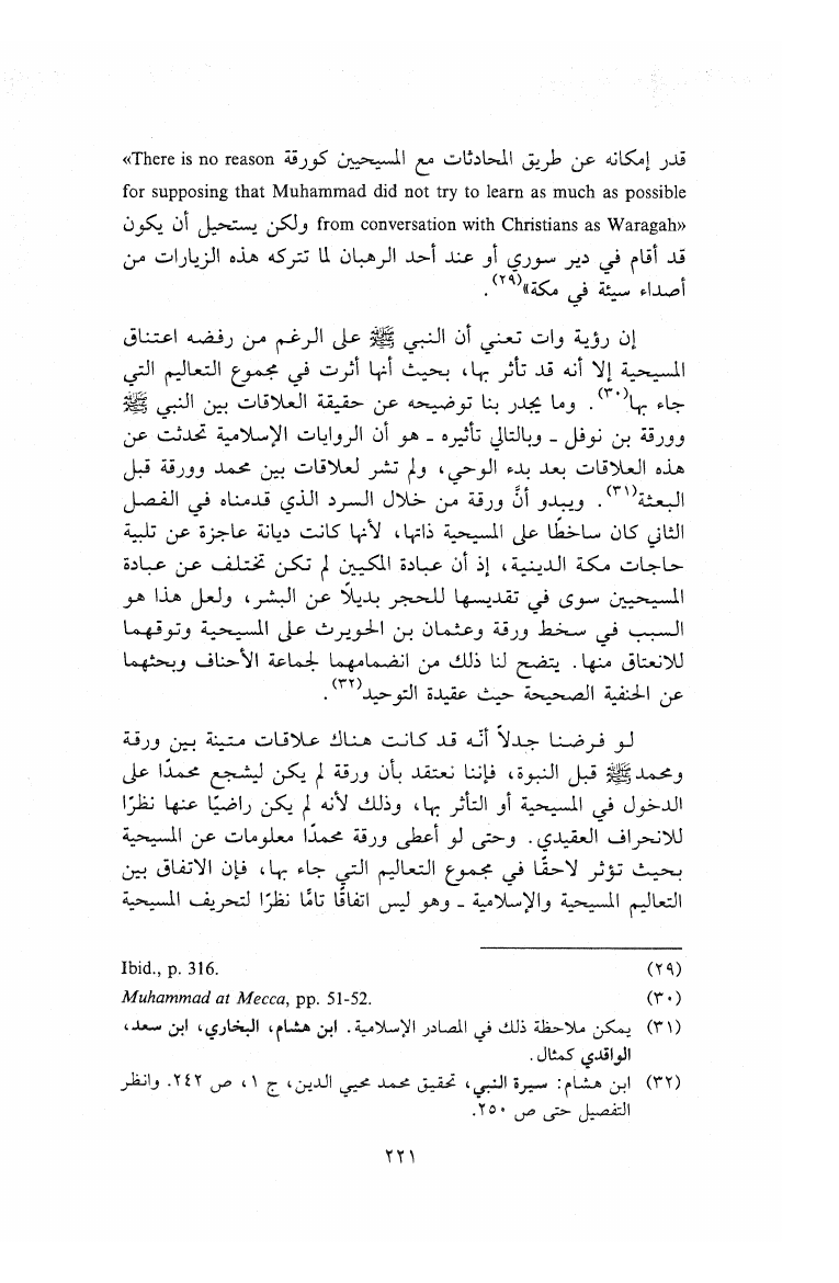 نام کتاب : الاستشراق في السيرة النبوية دراسة تاريخية لآراء (وات-بروكلمان-فلهاوزن) مقارنة بالرؤية الإسلامية نویسنده : عبد الله محمد الأمين النعيمي جلد : 1 صفحه : 221