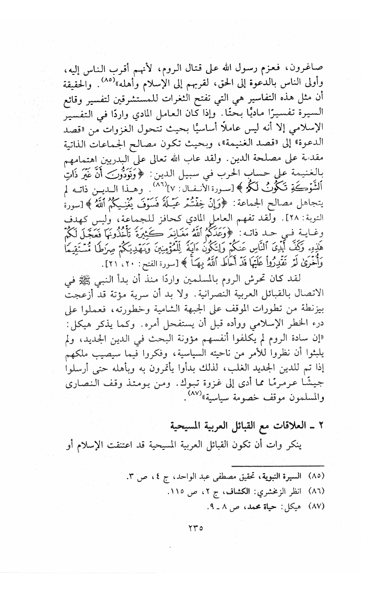 نام کتاب : الاستشراق في السيرة النبوية دراسة تاريخية لآراء (وات-بروكلمان-فلهاوزن) مقارنة بالرؤية الإسلامية نویسنده : عبد الله محمد الأمين النعيمي جلد : 1 صفحه : 235