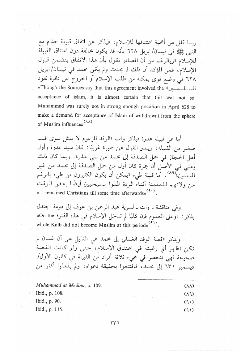 نام کتاب : الاستشراق في السيرة النبوية دراسة تاريخية لآراء (وات-بروكلمان-فلهاوزن) مقارنة بالرؤية الإسلامية نویسنده : عبد الله محمد الأمين النعيمي جلد : 1 صفحه : 236