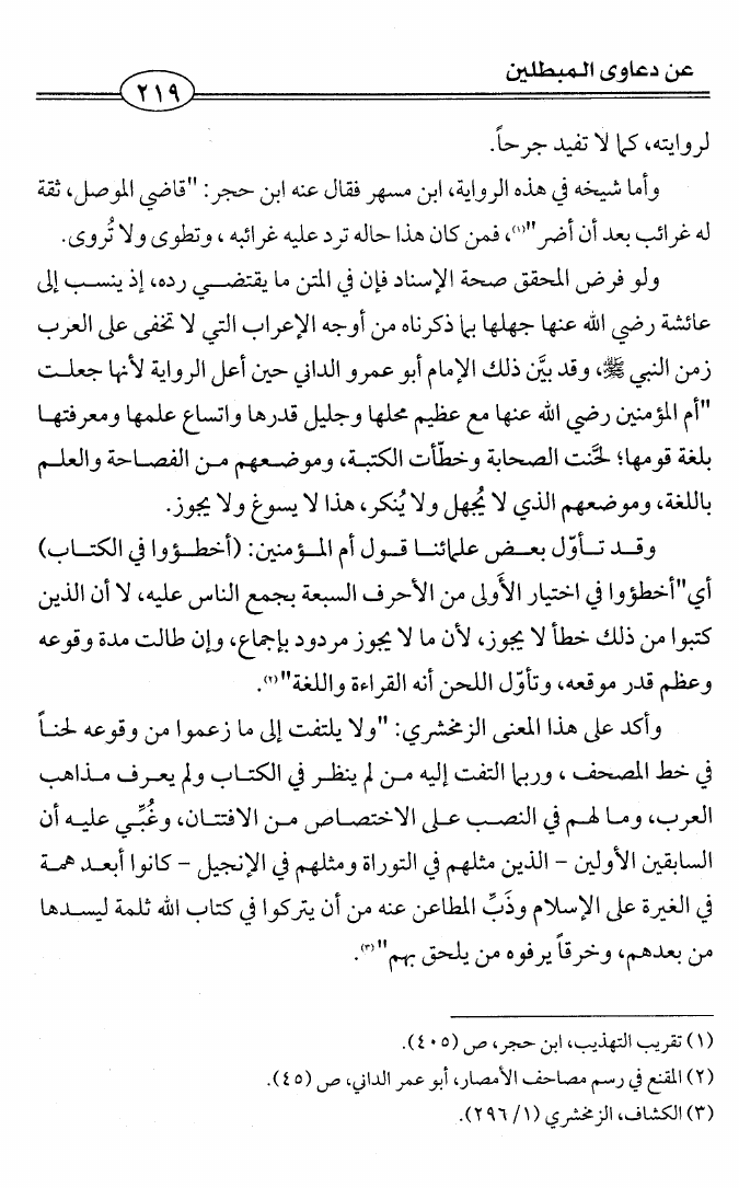 تنزيه القرآن الكريم عن دعاوي المبطلين