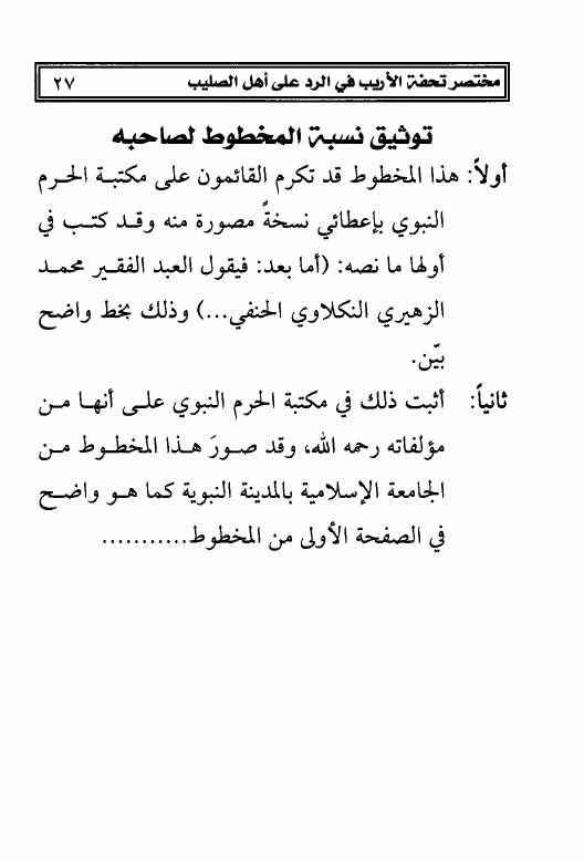 مختصر تحفة الأريب في الرد على أهل الصليب